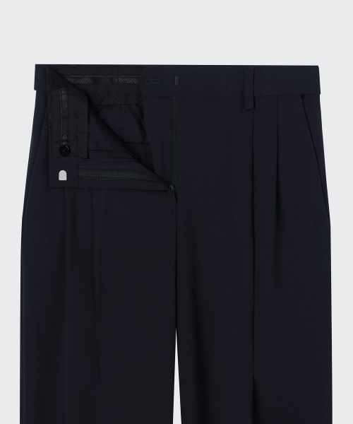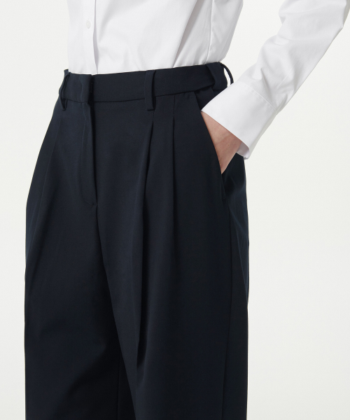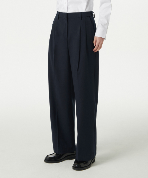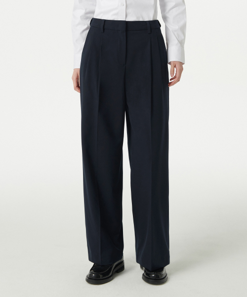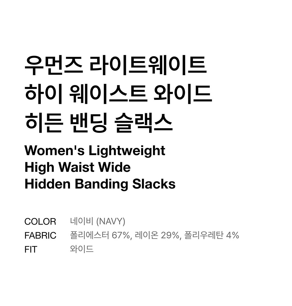 우먼즈 라이트웨이트 하이 웨이스트 와이드 히든 밴딩 슬랙스 [네이비]
