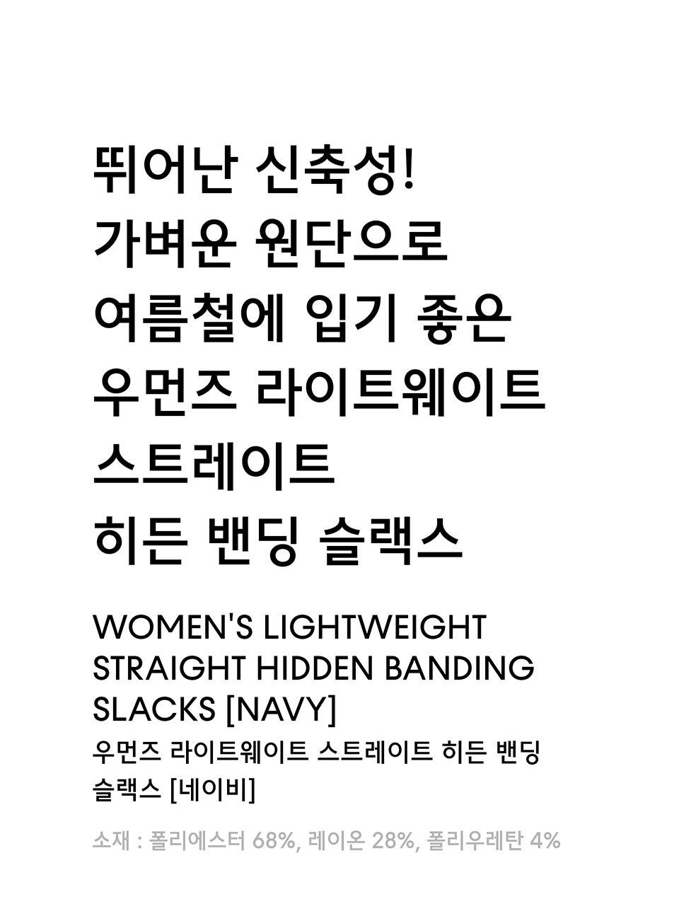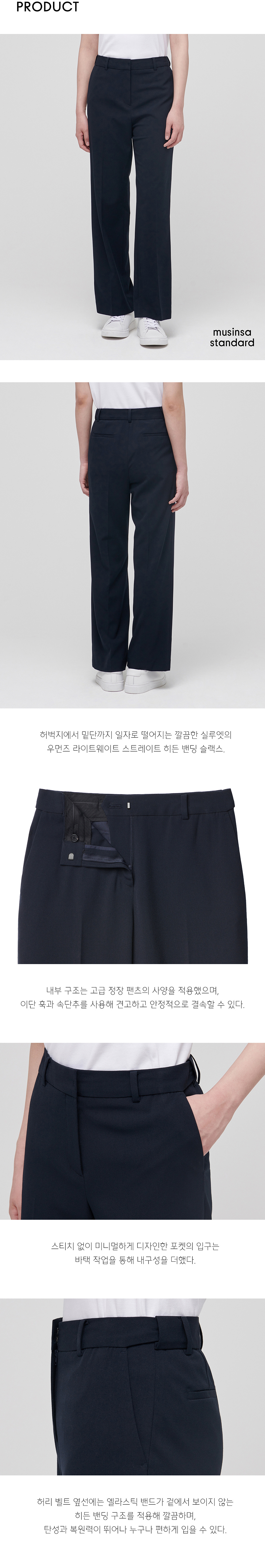 우먼즈 라이트웨이트 스트레이트 히든 밴딩 슬랙스 [네이비]
