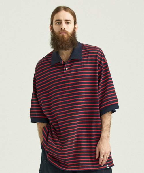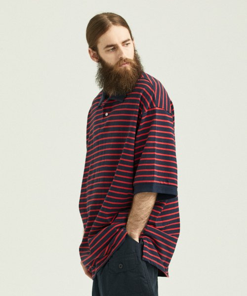 CB 오버핏 스트라이프 PK티셔츠 ( 화이트/블랙)