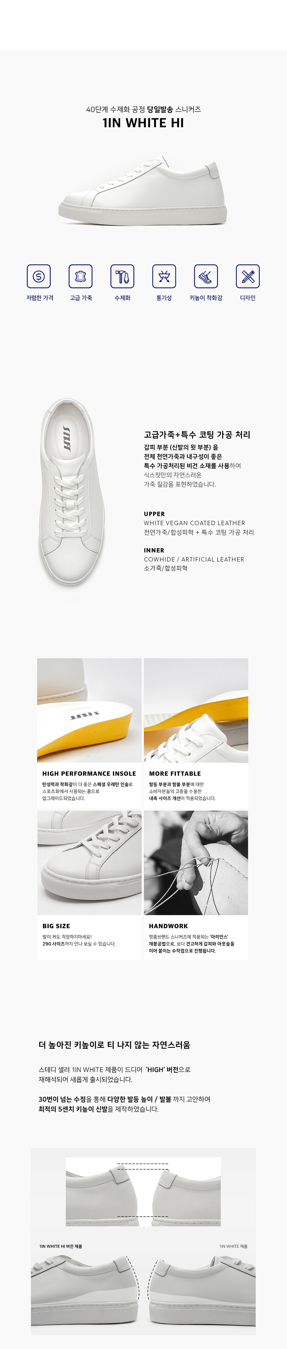 1IN WHITE HI - 화이트 스니커즈 키높이 버전