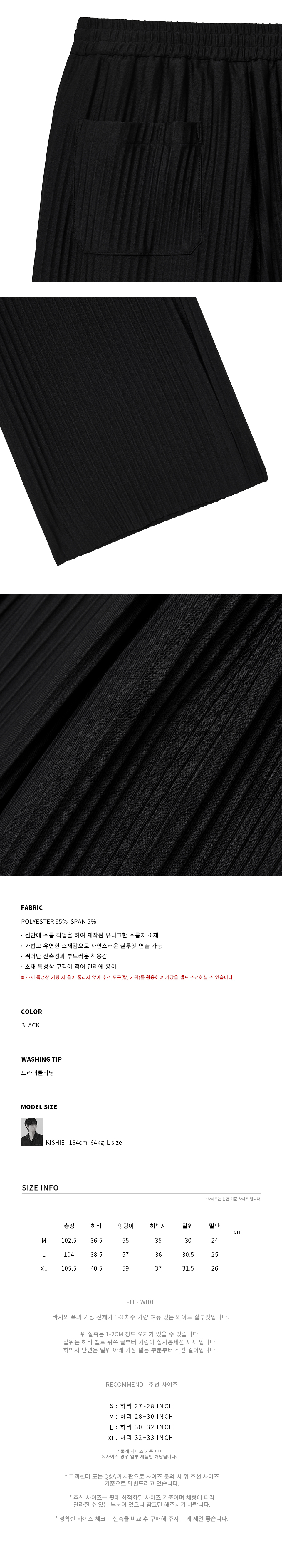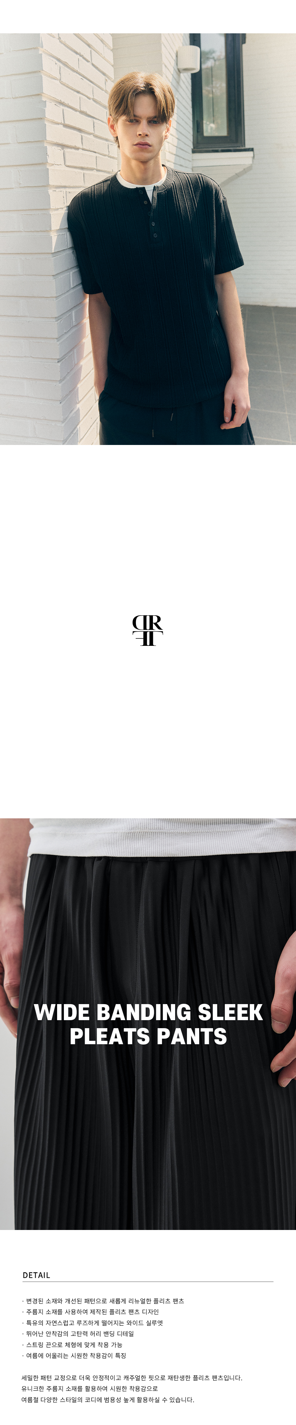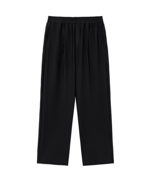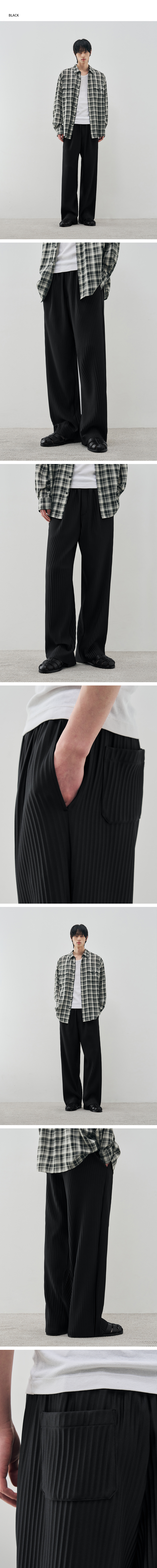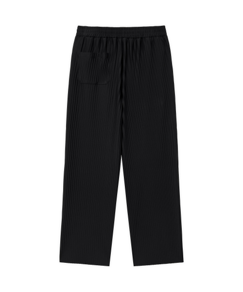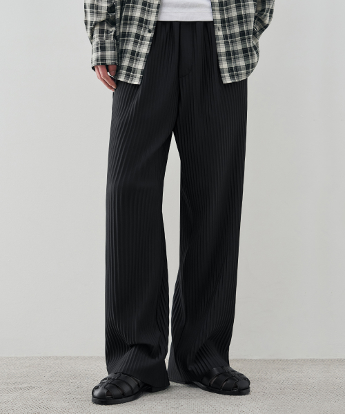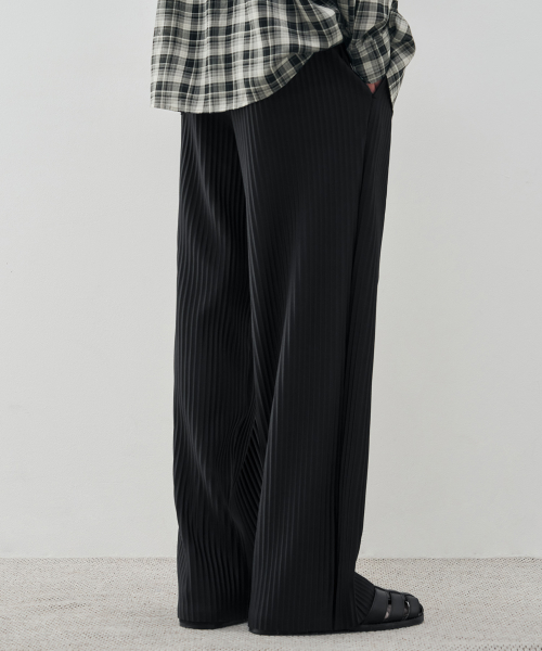 와이드 밴딩 슬릭 플리츠 팬츠 [BLACK]