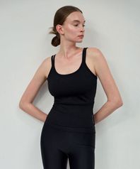 여성 요가복 DEVI-TS0024-블랙 필라테스 엣지크롭 슬리브리스 나시