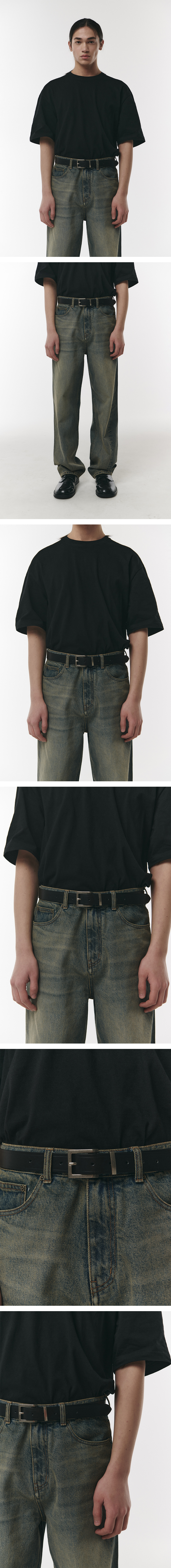 미니멀 스퀘어 하드레더 벨트 (다크브라운)