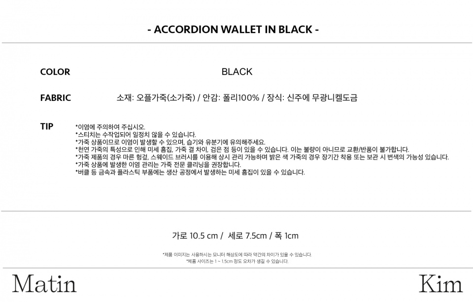 무광의 마뗑킴 로고가 박힌 묵직하고 볼드한 장식이 포인트인 아코디언 지갑