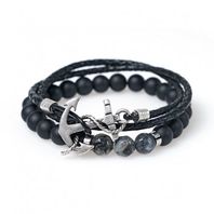 블랙톤의 원석팔찌와 블랙 가죽스트링 앵커팔찌로 이루어진 팔찌세트입니다.