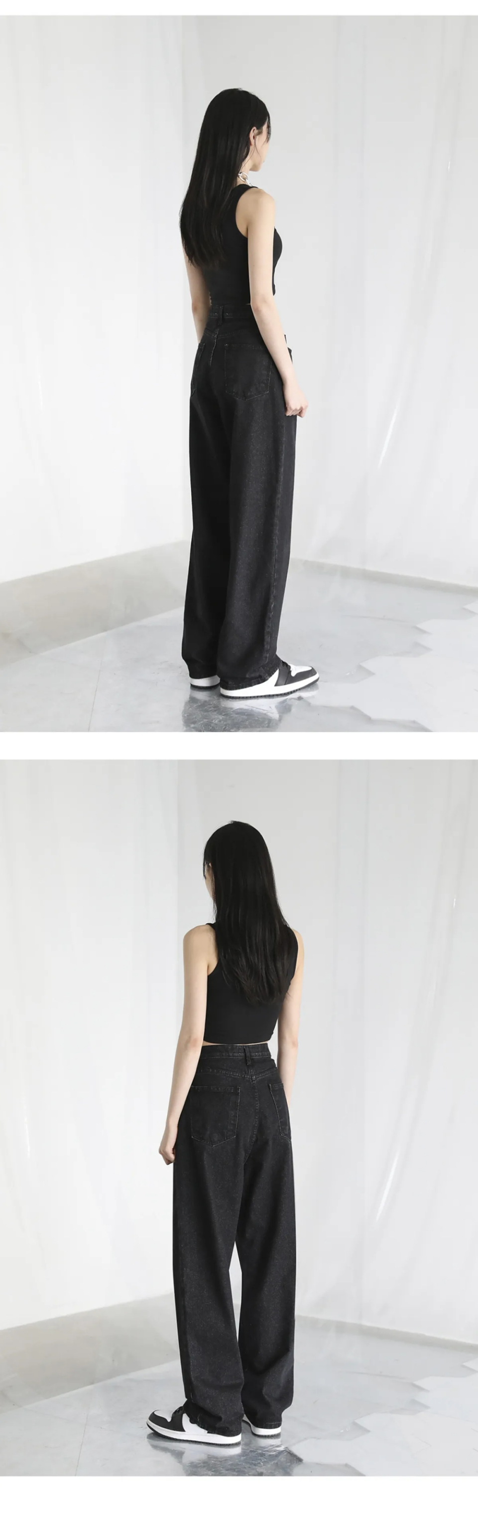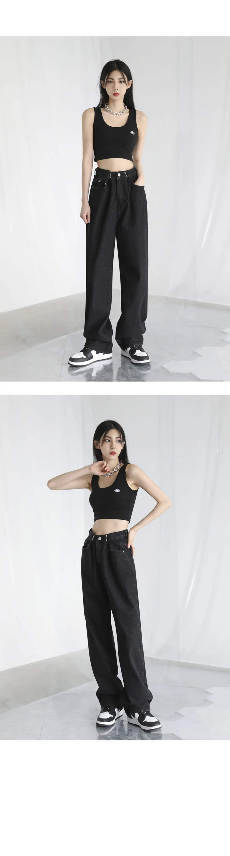 BUCKLE WIDE DENIM PANTS BLACK