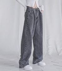 BUCKLE WIDE DENIM PANTS GREY