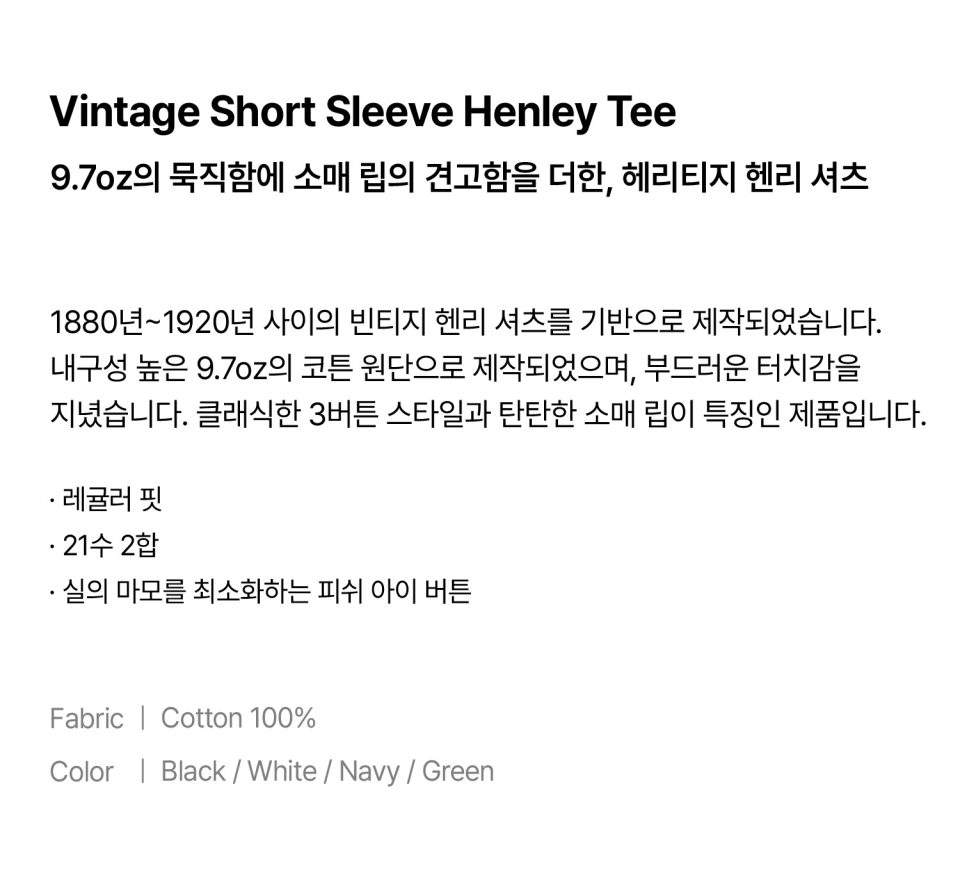 Vintage Short Sleeve Henley Tee Black