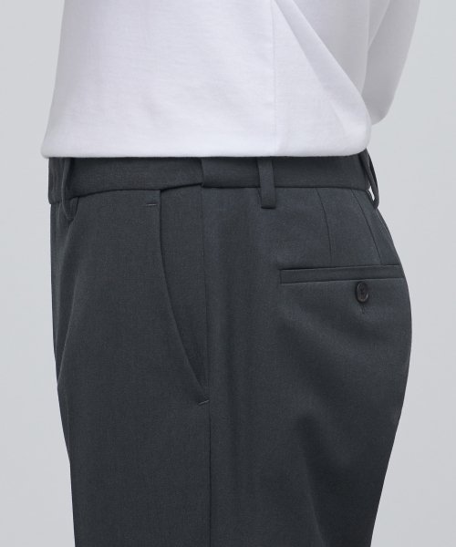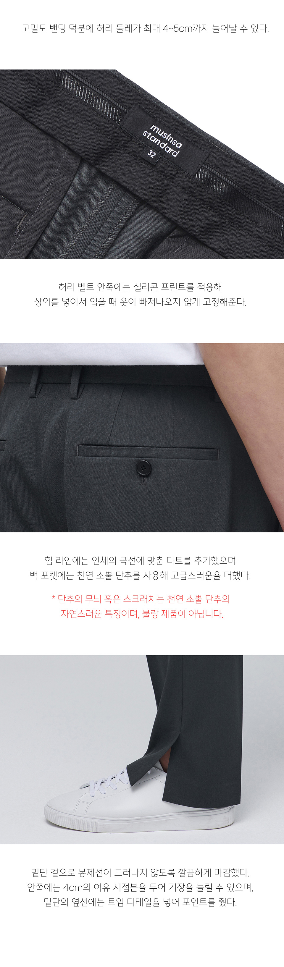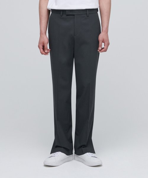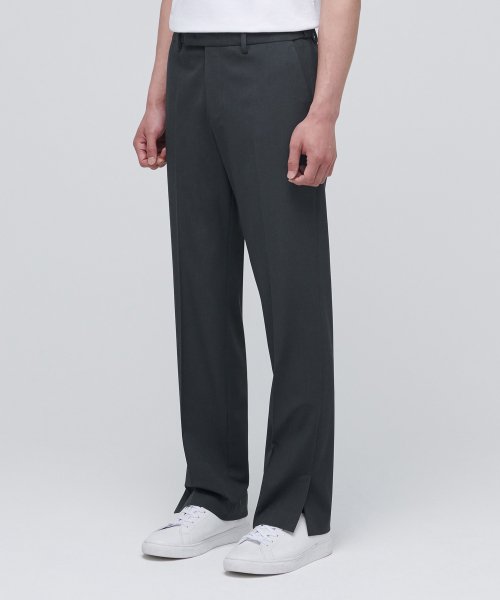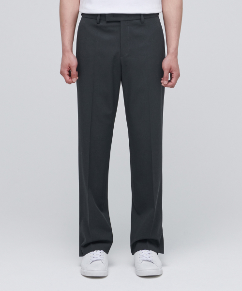 세미 와이드 슬릿 히든 밴딩 슬랙스 [다크 그레이]