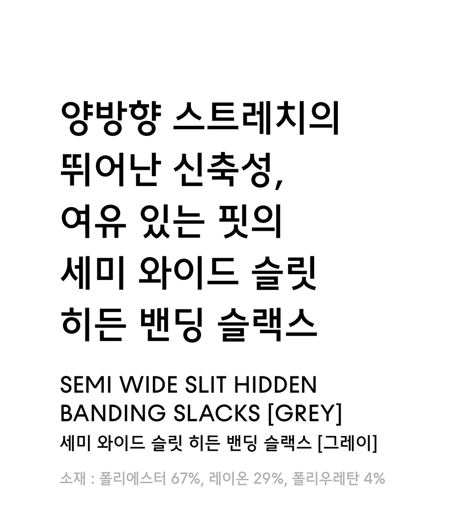 세미 와이드 슬릿 히든 밴딩 슬랙스 [그레이]