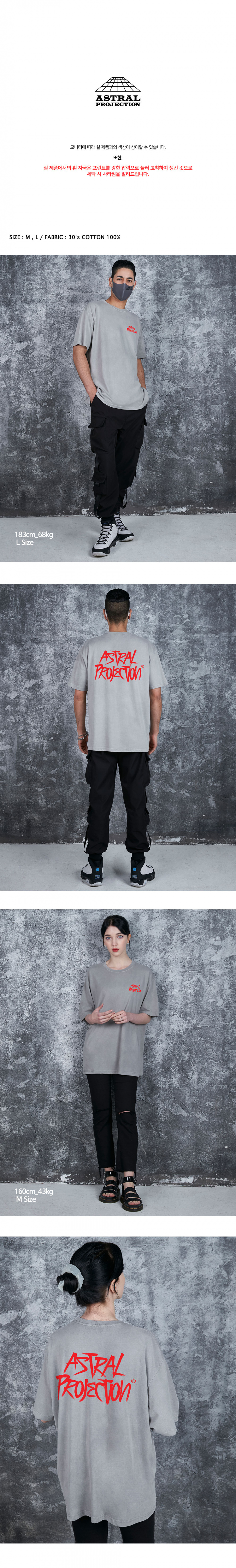 그래피티 레터링 오버핏 가먼트 다이 반팔티셔츠_그레이