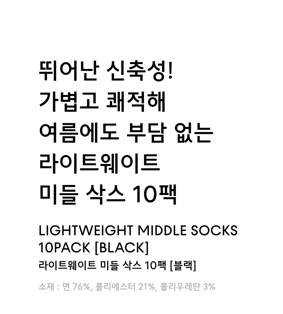 라이트웨이트 미들 삭스 10팩 [블랙]