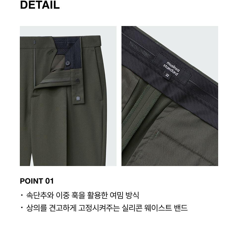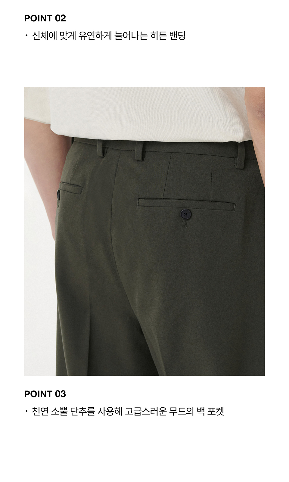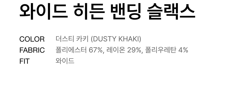 와이드 히든 밴딩 슬랙스 [더스티 카키]