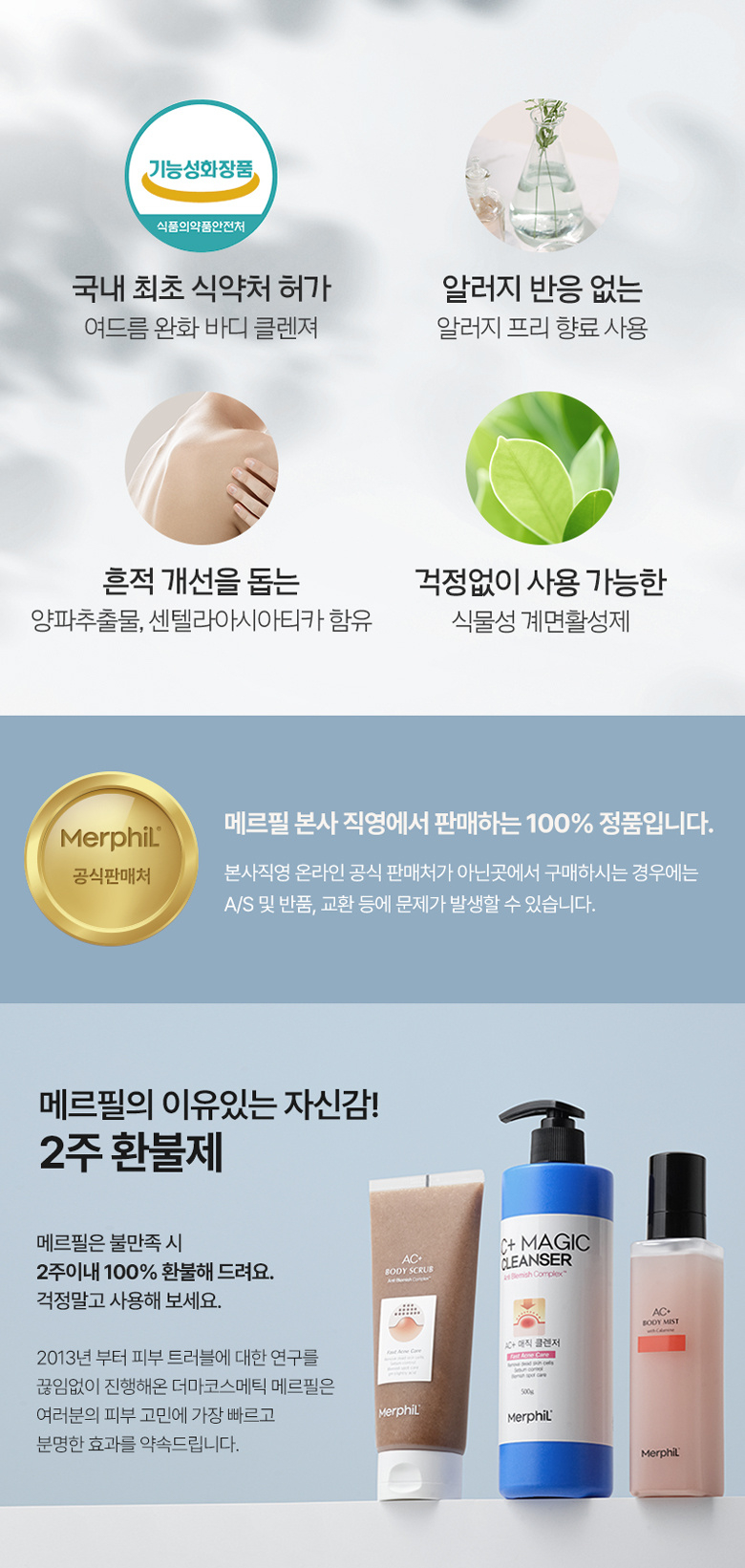 메르필(MERPHIL)은 진보된 피부 과학과 제약 기술 그리고 자연 성분의 조합을 통해 빠르고 확실한 피부 변화를 끌어내는 프로페셔널 더마 코스메틱 브랜드입니다.