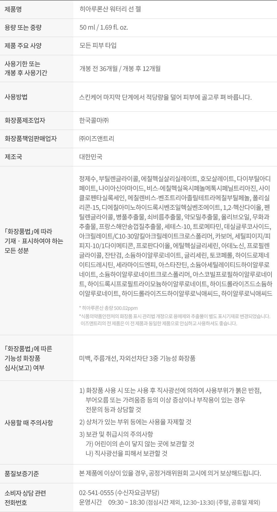 히아루론산 워터리 선 젤