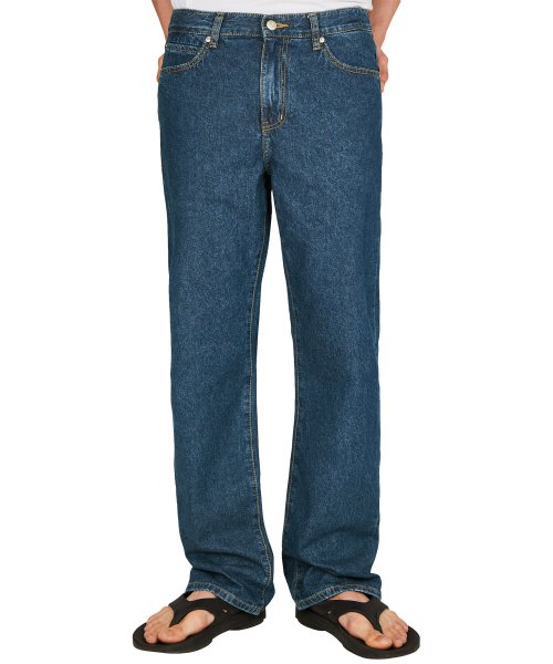 베이직 브러쉬 워싱 스트레이트 데님 팬츠 (MID BLUE)