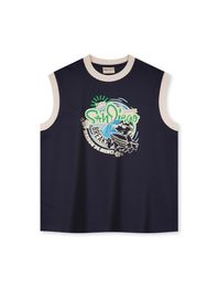UNISEX MAISON 퍼피 그래픽 배색 싱글 저지 슬리브리스 탑 네이비크림(FCF2TS425M)