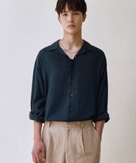 루즈핏 오픈카라 텐셀 린넨 셔츠 [네이비]