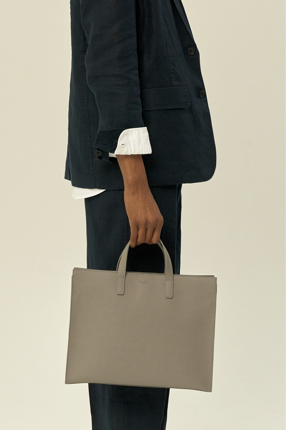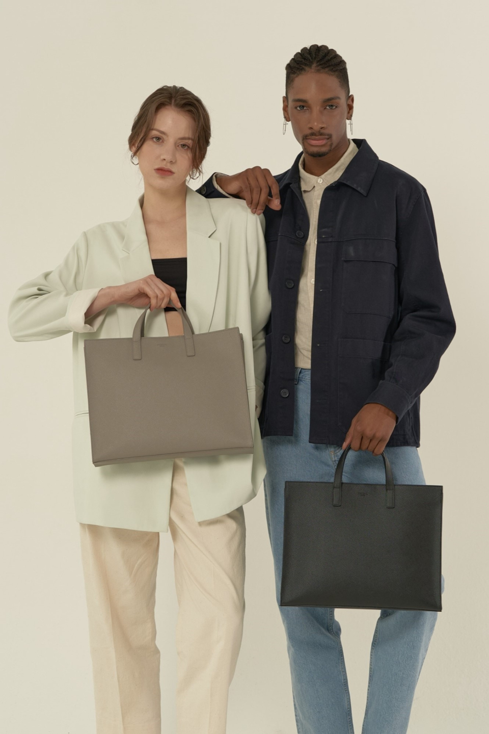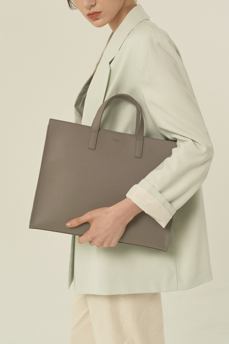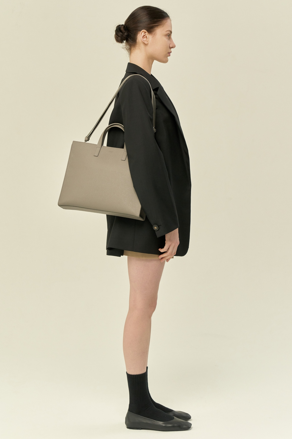 스탠다드 디자인의 가로로 긴 레귤러 사이즈 토트백