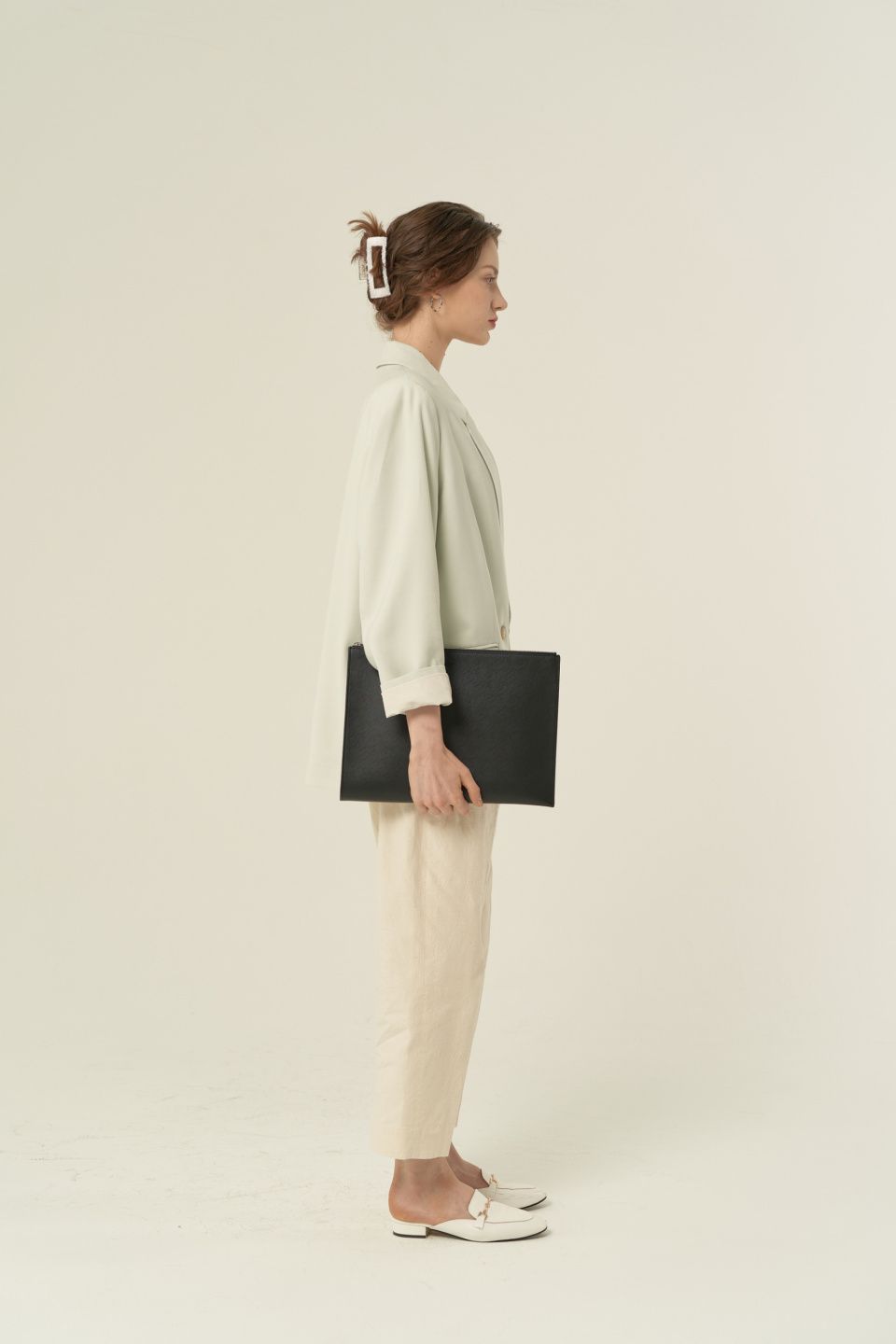 측면 확장, 전면 엣지 코트된 라지 사이즈 클러치백