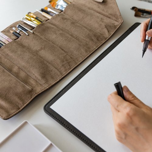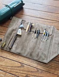 검정색 부직포로 감싼 필통이 두꺼운 박스에 담겨있고 박스는 비닐로 한번 더 포장됩니다.