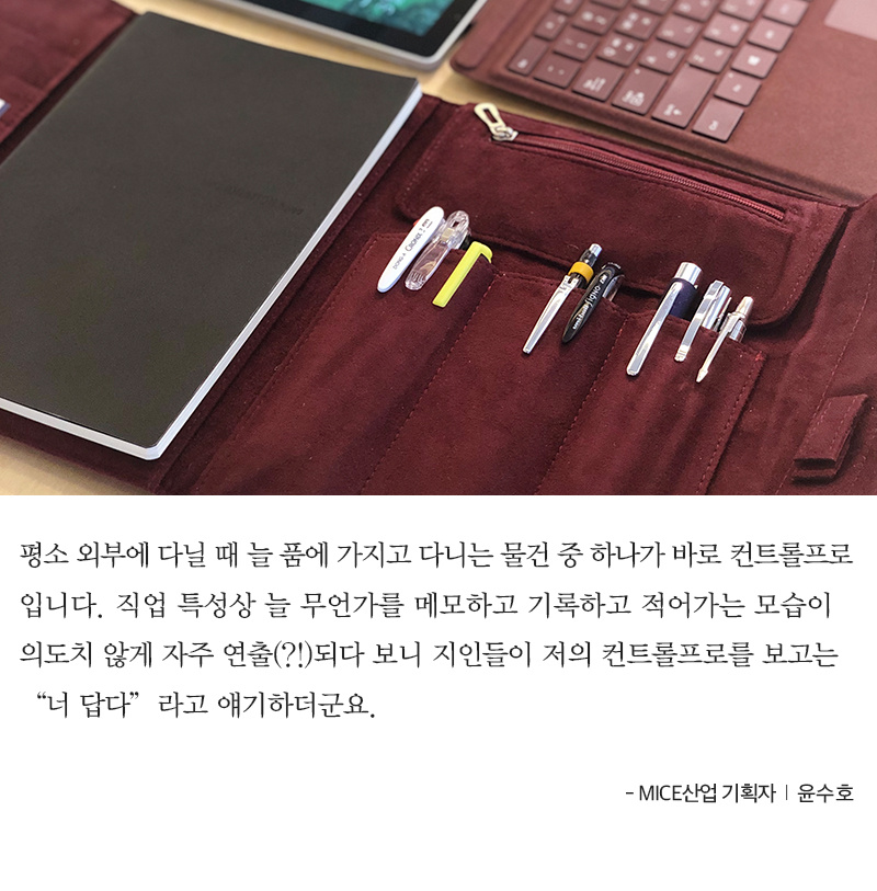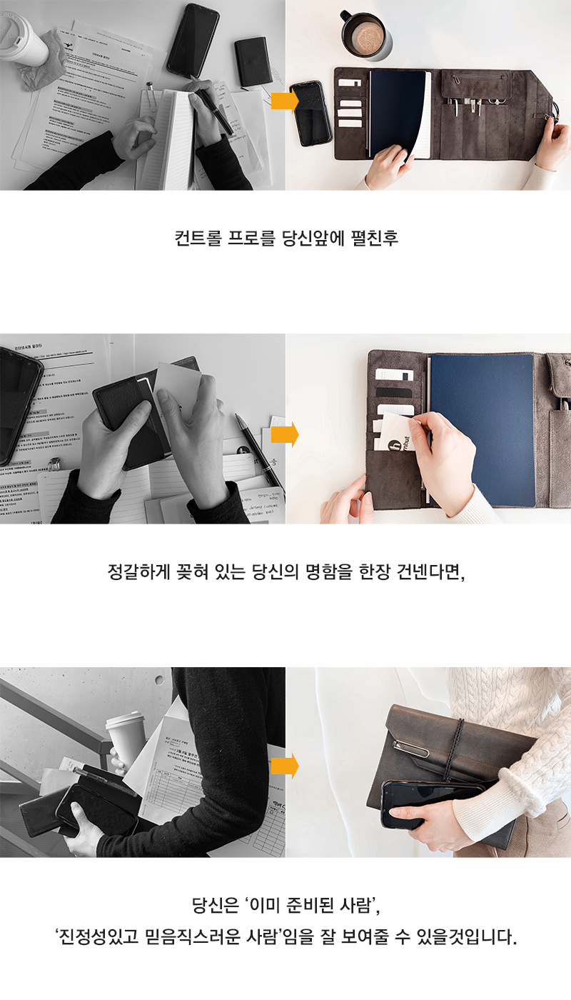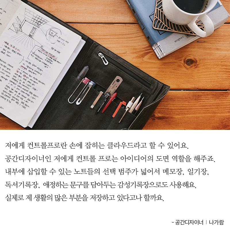 컨트롤 프로는 자주쓰는 노트와 펜을 정갈하게 배치하여 일의 시작이 빠르고 편리해지도록 돕습니다.