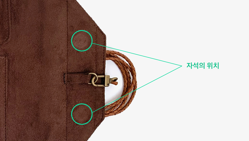끈을 매지 않더라도 덮개가 열리거나 쏟아지지 않도록 여닫는 날개 부위에 강력 자석을 넣었습니다.