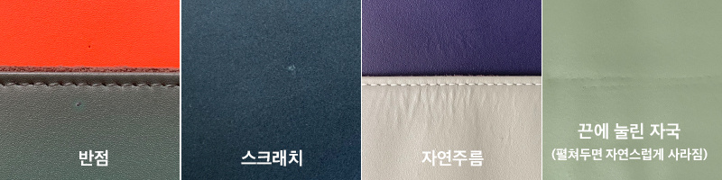 위와 같은 경우는 소가죽 원단 자체의 특성으로, 결함이나 제작과정의 불량이 아닙니다.