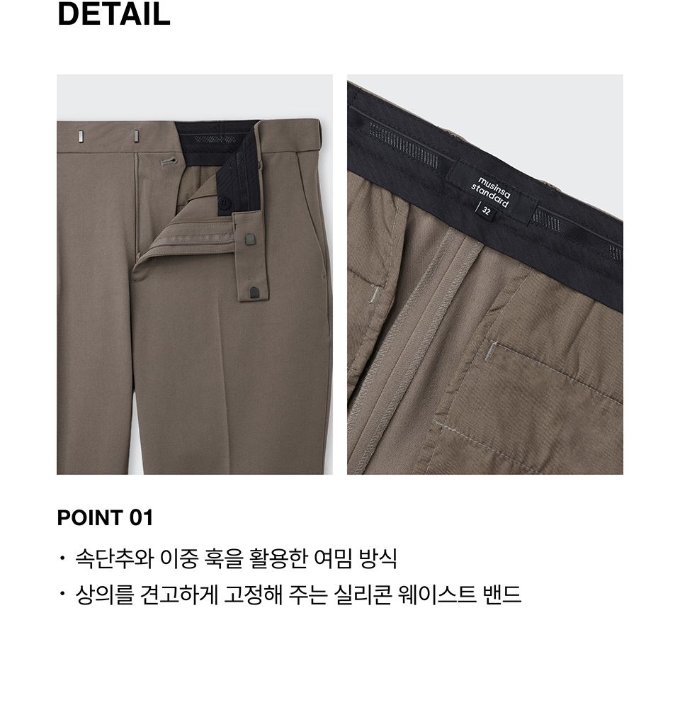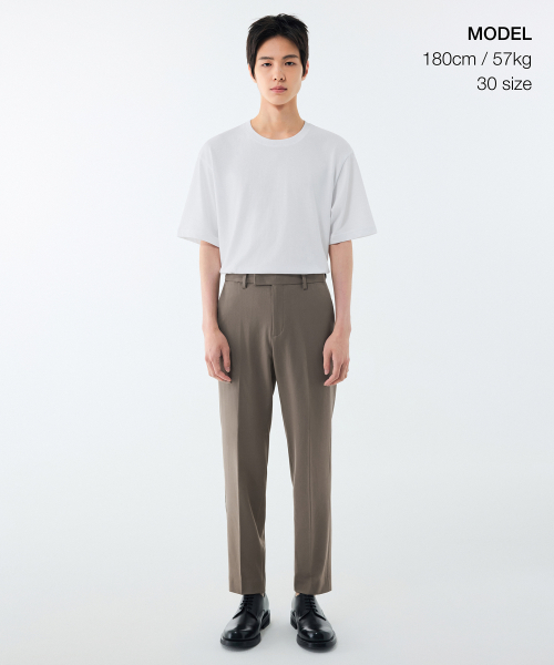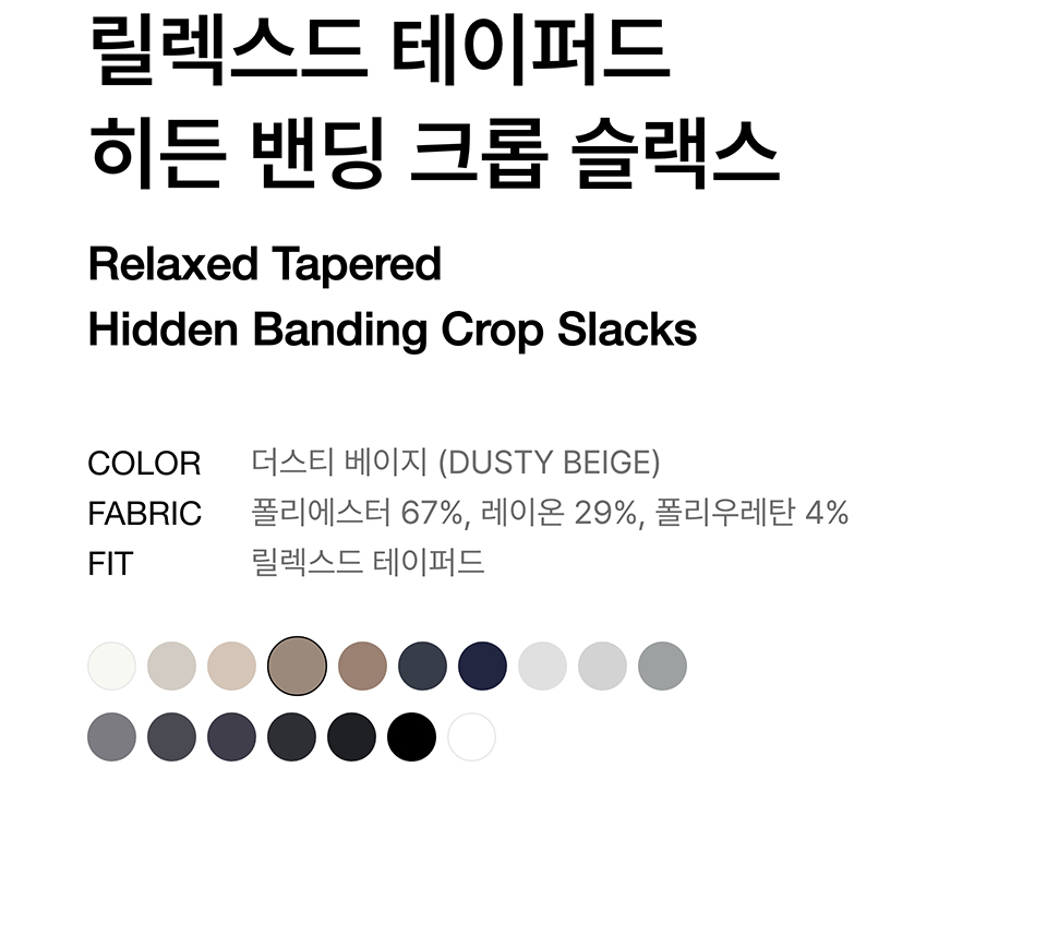 릴렉스드 테이퍼드 히든 밴딩 크롭 슬랙스 [더스티 베이지]