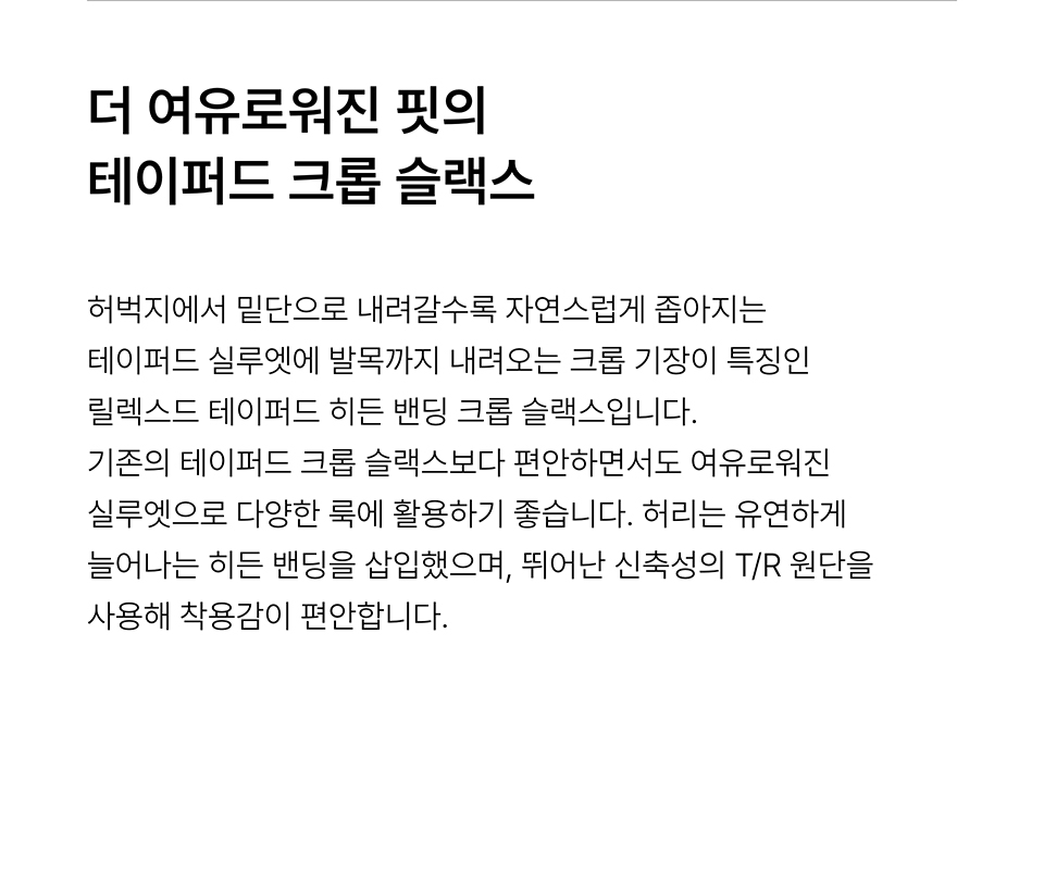 릴렉스드 테이퍼드 히든 밴딩 크롭 슬랙스 [블랙]