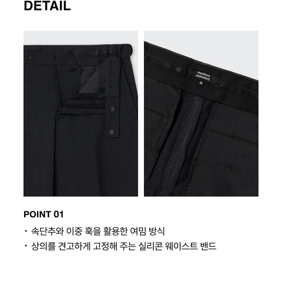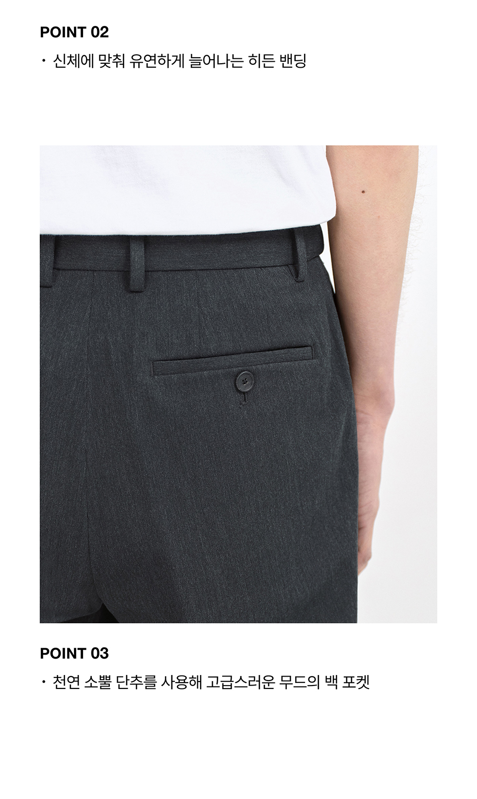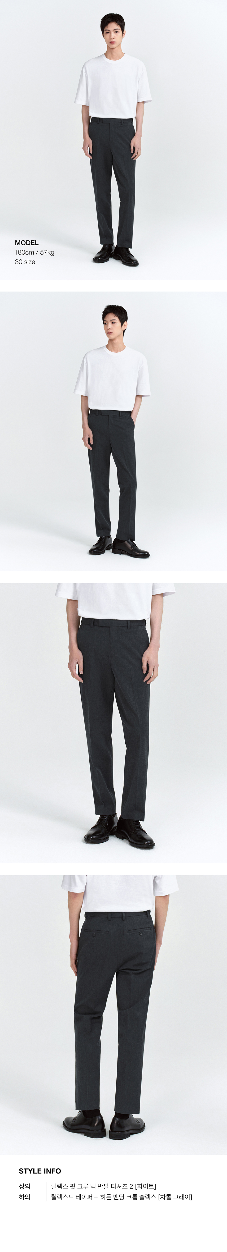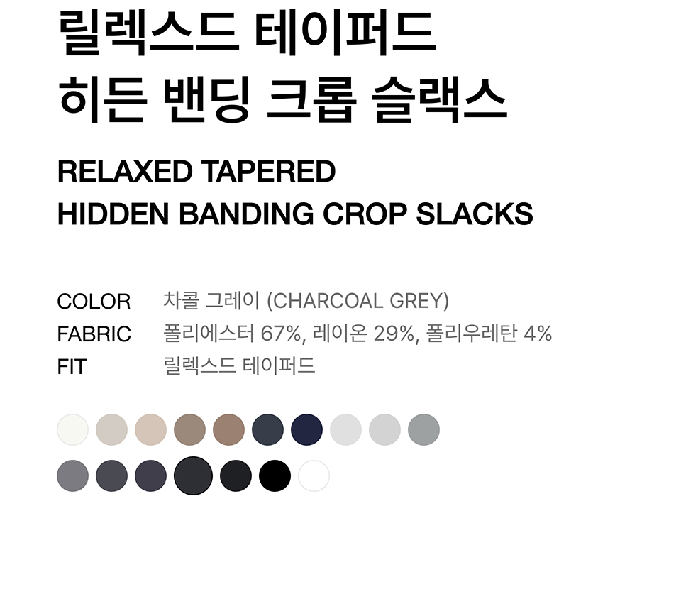 릴렉스드 테이퍼드 히든 밴딩 크롭 슬랙스 [차콜 그레이]