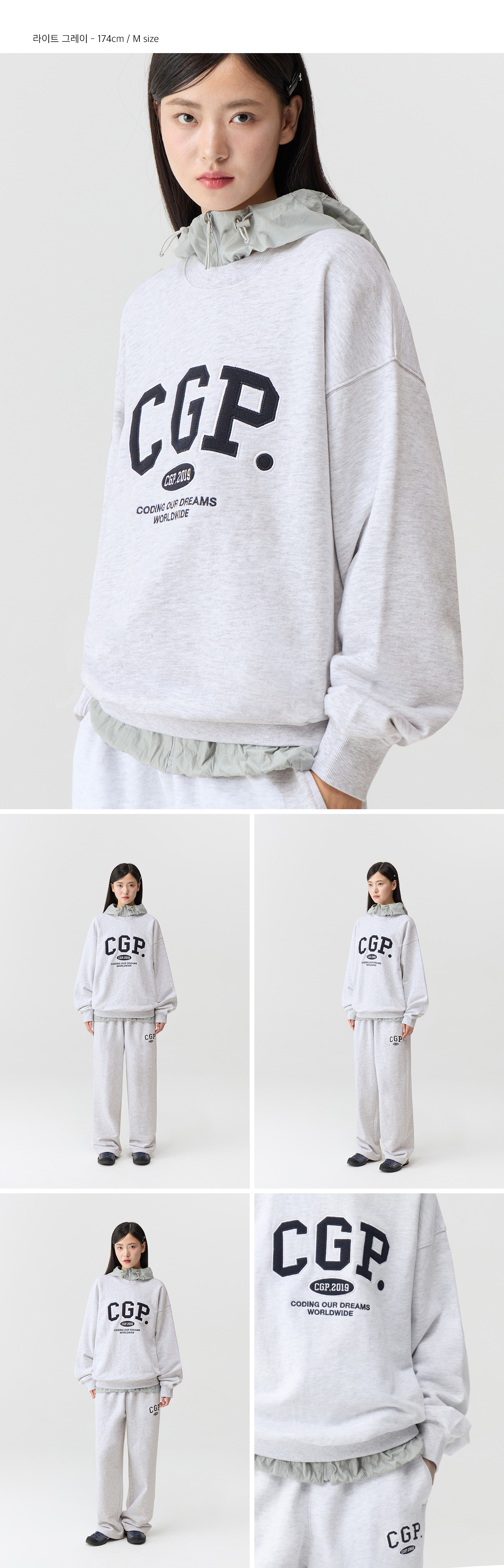 [기모 Ver.] CGP 아치 로고 후드티_라이트그레이