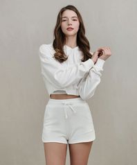 여성 요가복 DEVI-B0044-화이트 필라테스 스트랩 돌핀 숏팬츠