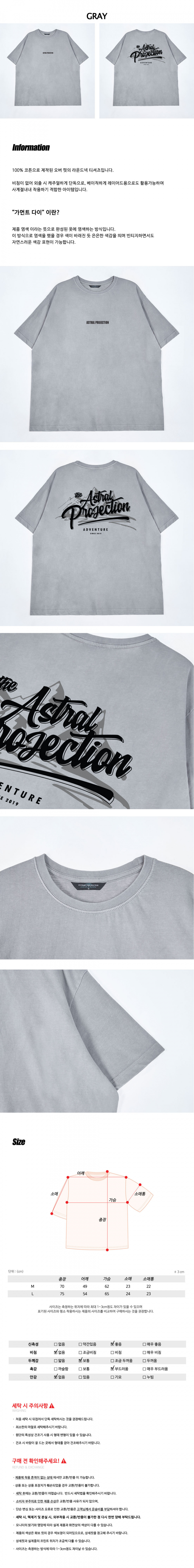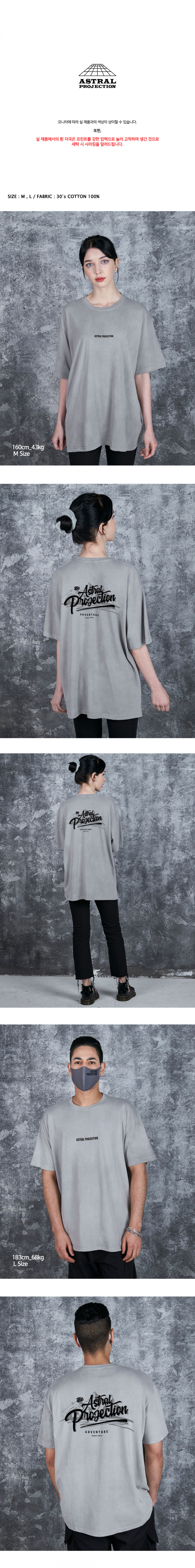 어드벤처 오버핏 가먼트 다이 반팔티셔츠_그레이