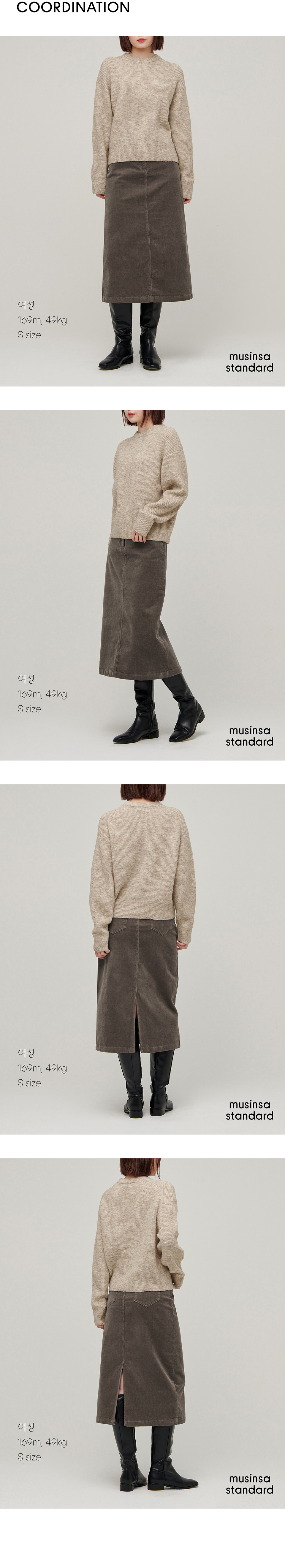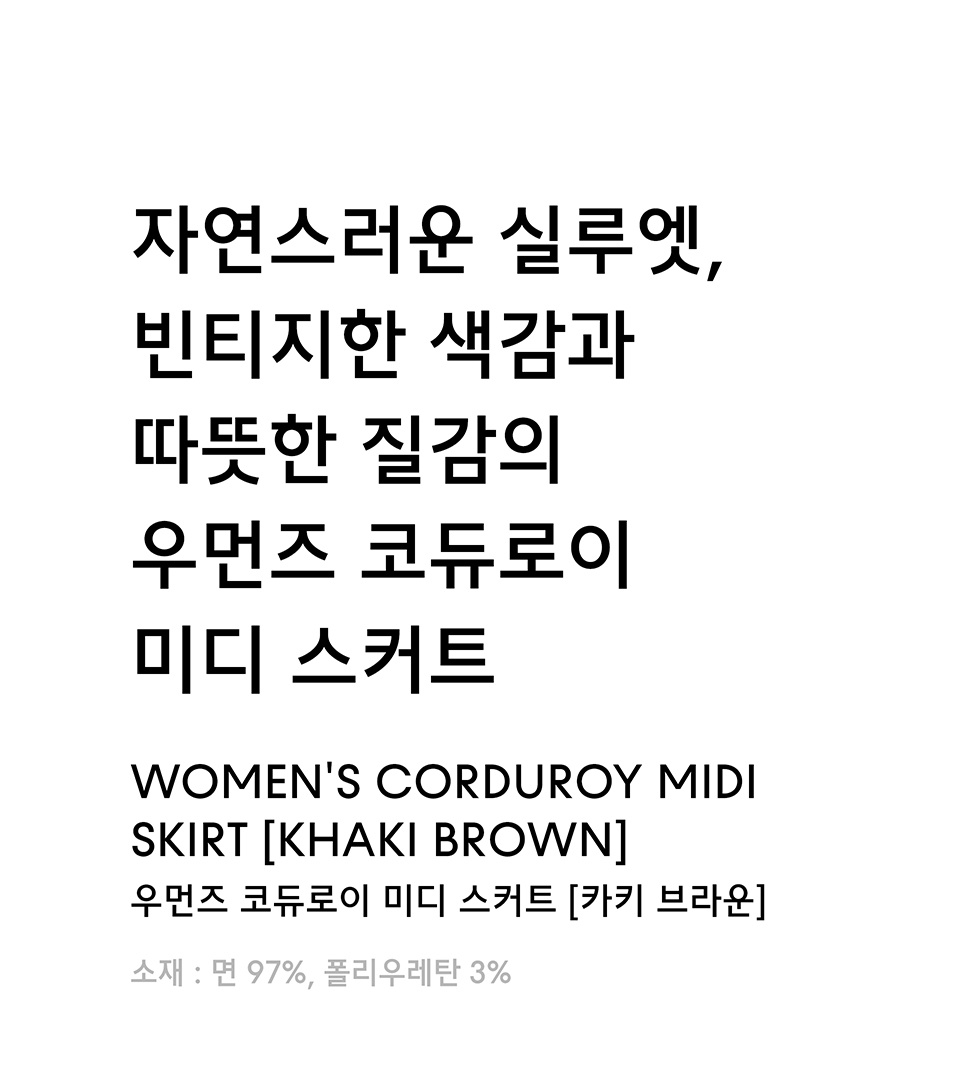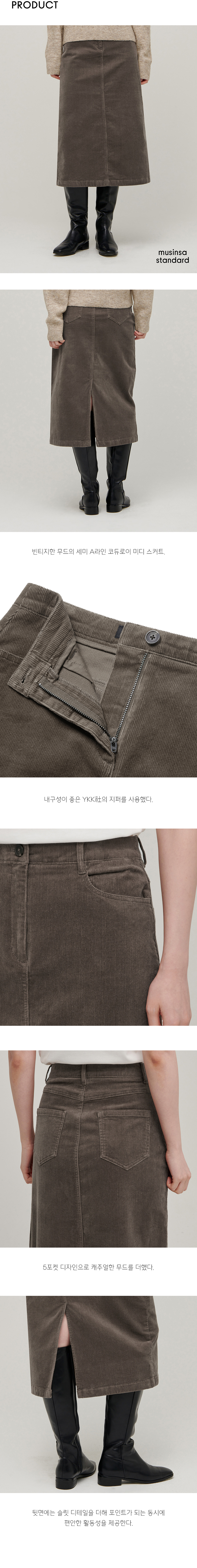 우먼즈 코듀로이 미디 스커트 [카키 브라운]