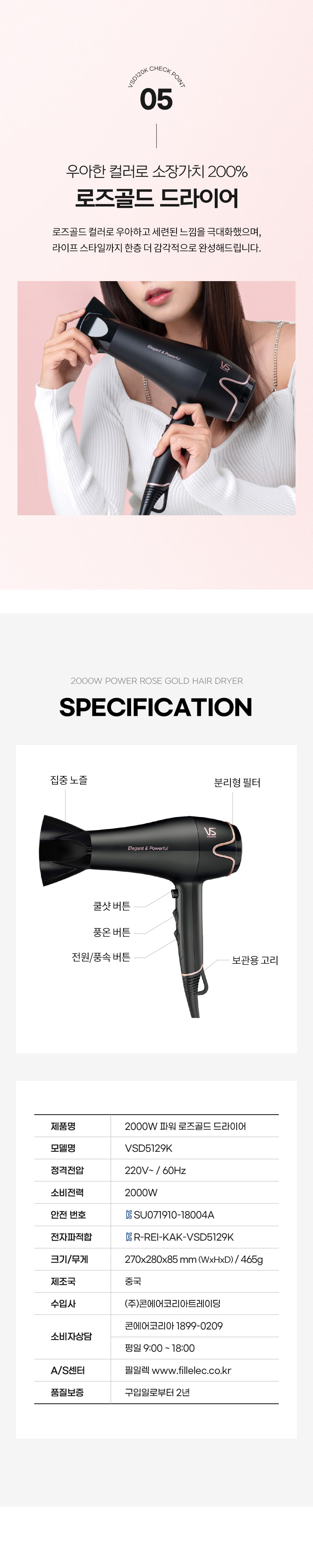 2000W 전문가용 강력바람 헤어드라이기 드라이어 5129K