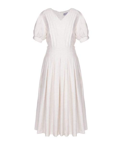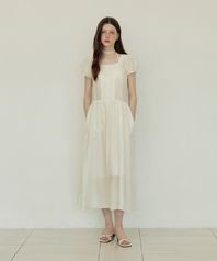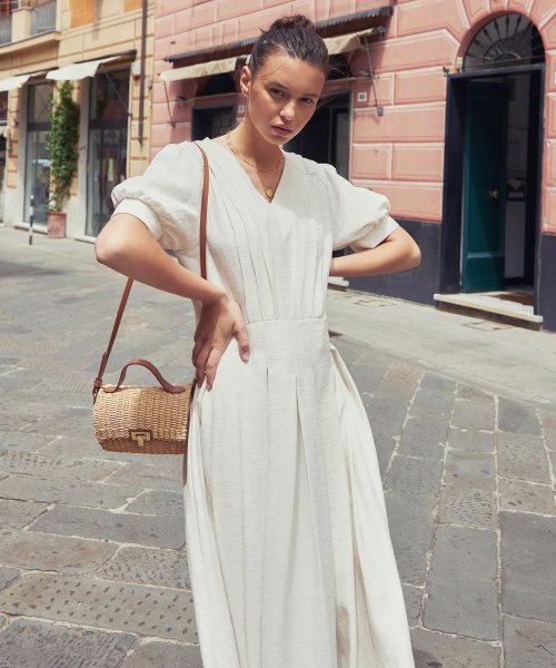 원 사이드 버튼 퍼프 롱 원피스 - 베이지