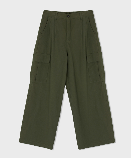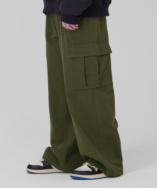 와이드 빅포켓 밴딩 카고 팬츠 카키