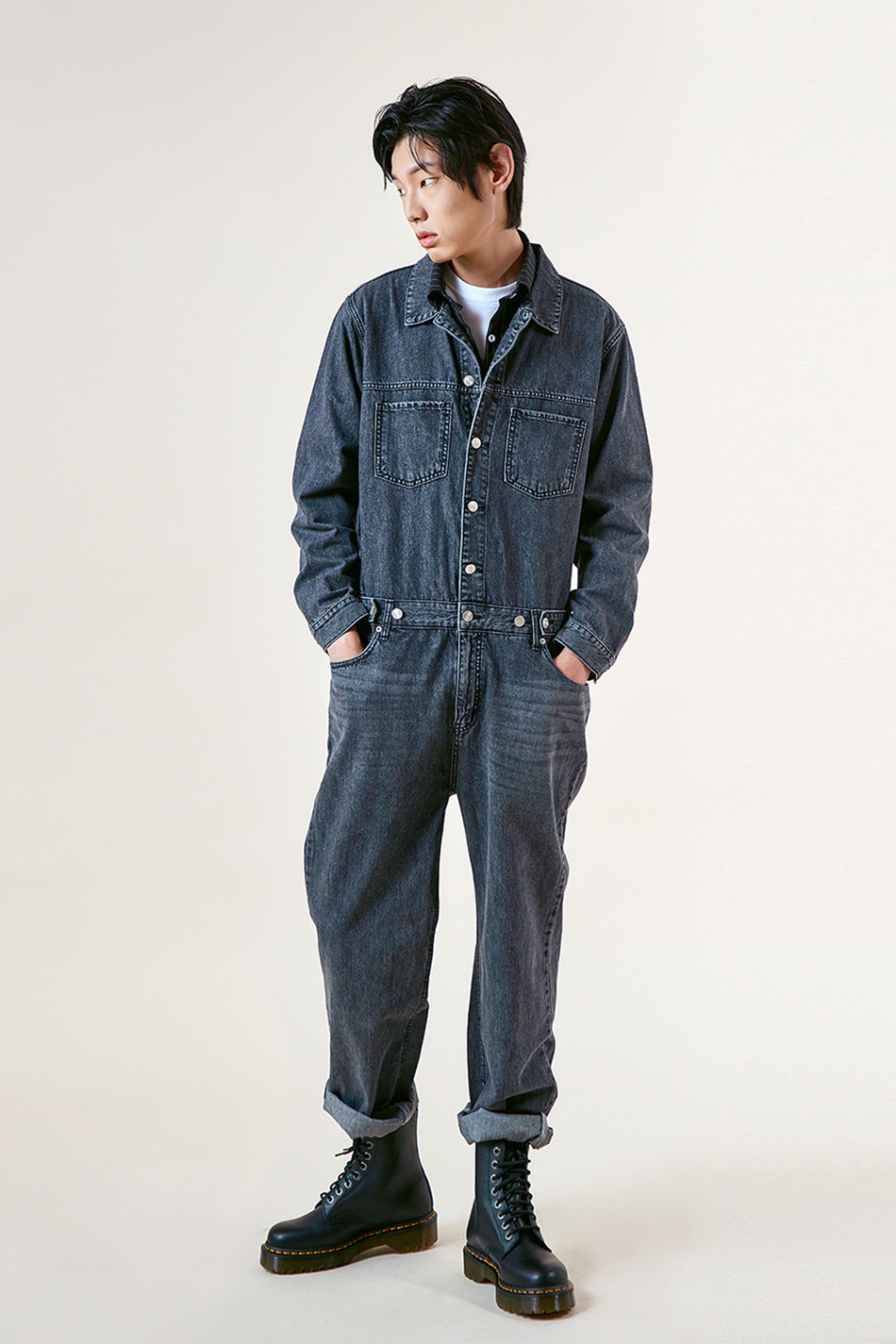 PLG 데님 점프수트(Black)