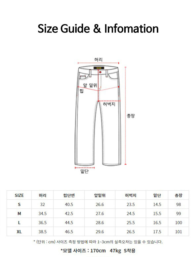 *수작업 통한 생산 방식으로 데님은 품과 기장(1~3cm)에 차이가 있을 수 있습니다