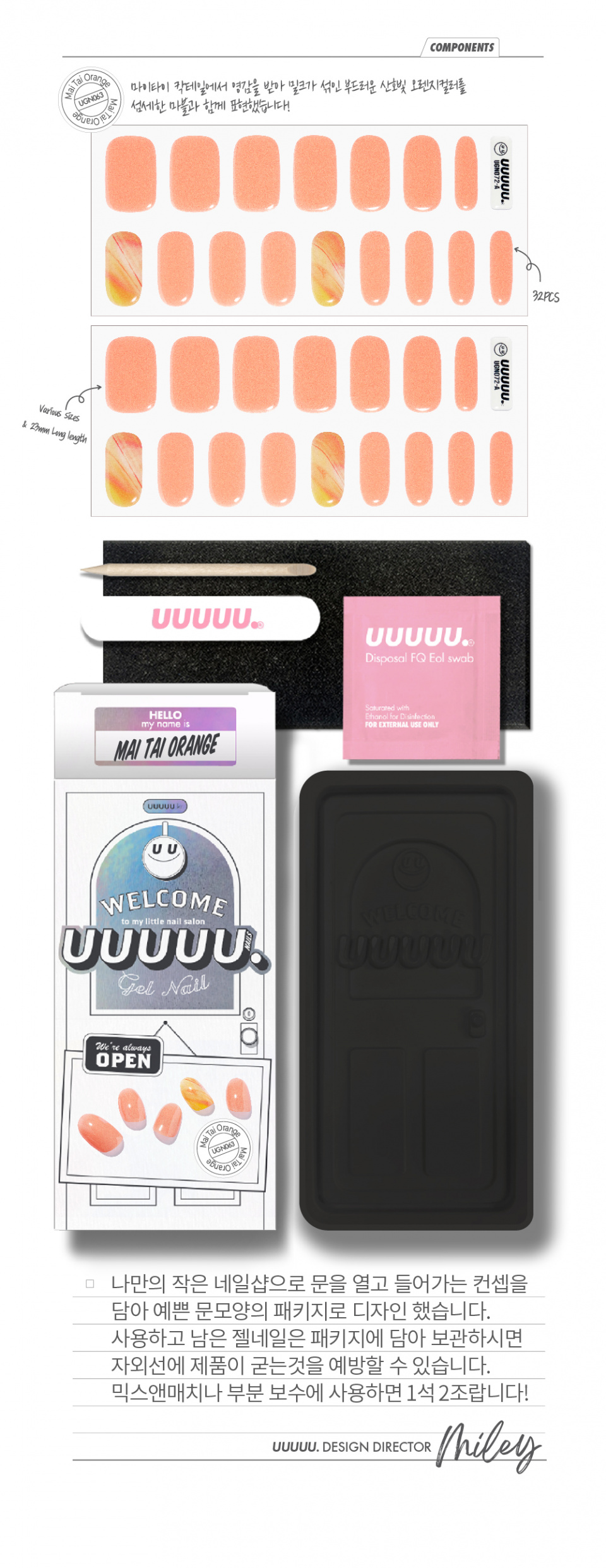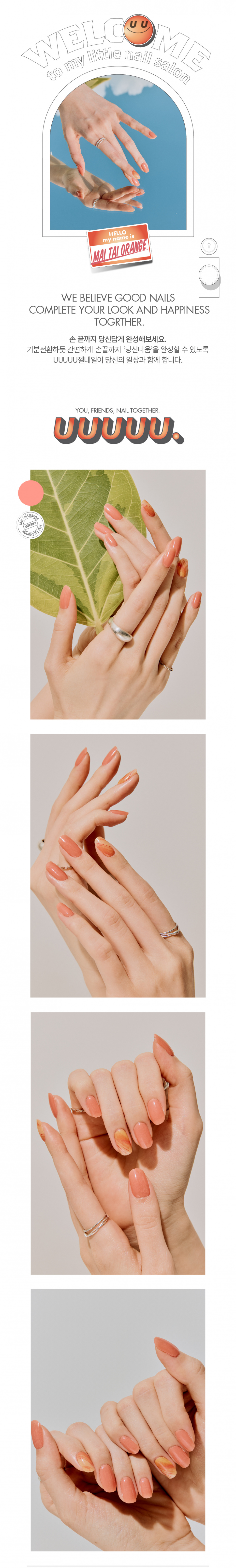 유유유유유(UUUUU.)는 'express U, for U, love U, with U UUUUU.'라는 슬로건 아래, 당신을 위한 쉽고 혁신적이며 감각적인 네일 제품을 선보이는 브랜드입니다.
