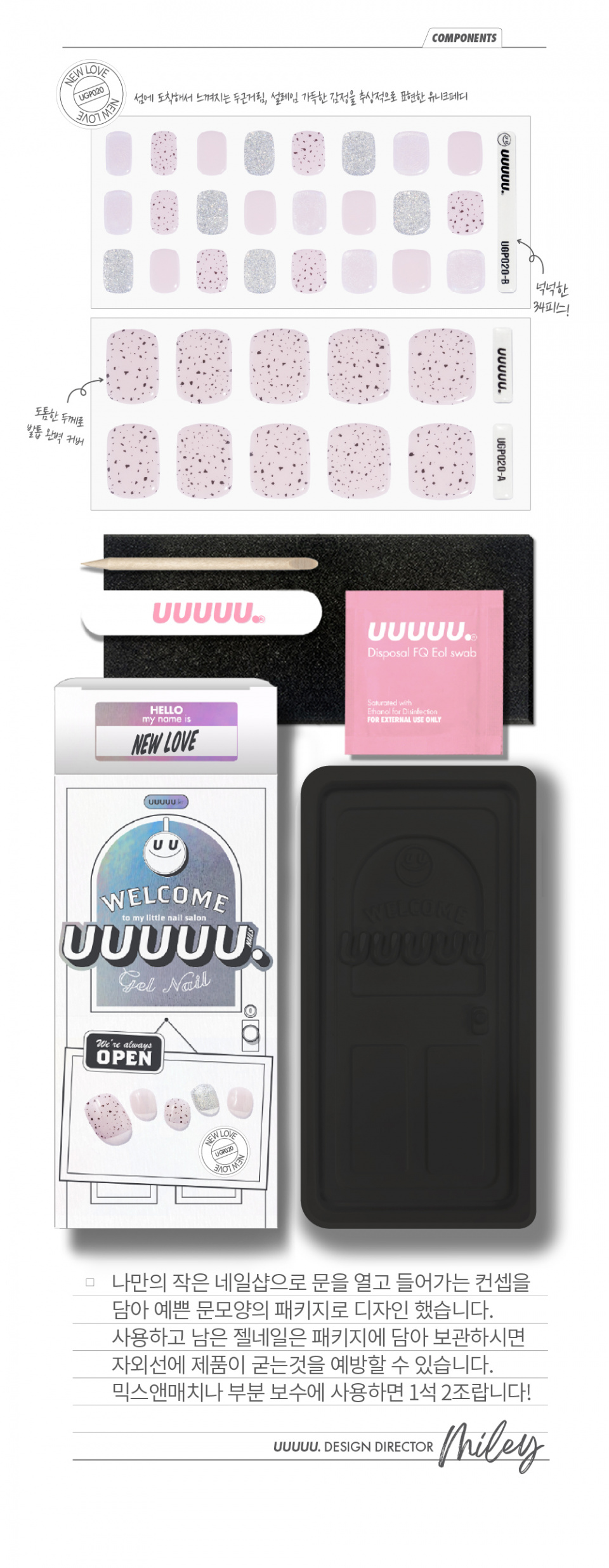 유유유유유(UUUUU.)는 'express U, for U, love U, with U UUUUU.'라는 슬로건 아래, 당신을 위한 쉽고 혁신적이며 감각적인 네일 제품을 선보이는 브랜드입니다.