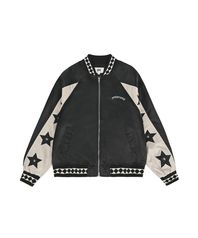 STAR LEATHER PATCH STUD JACKET - BLACK