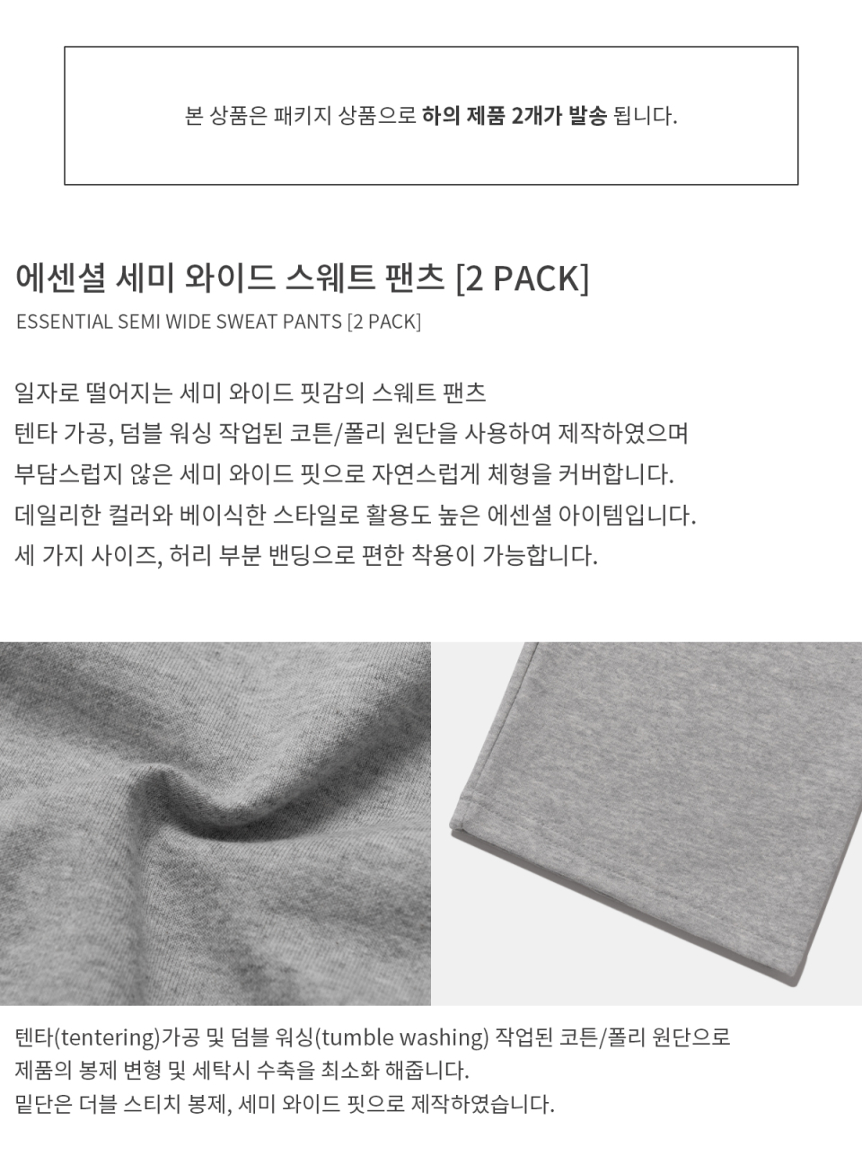 [2 PACK] 에센셜 세미 와이드 스웨트팬츠 (3color)