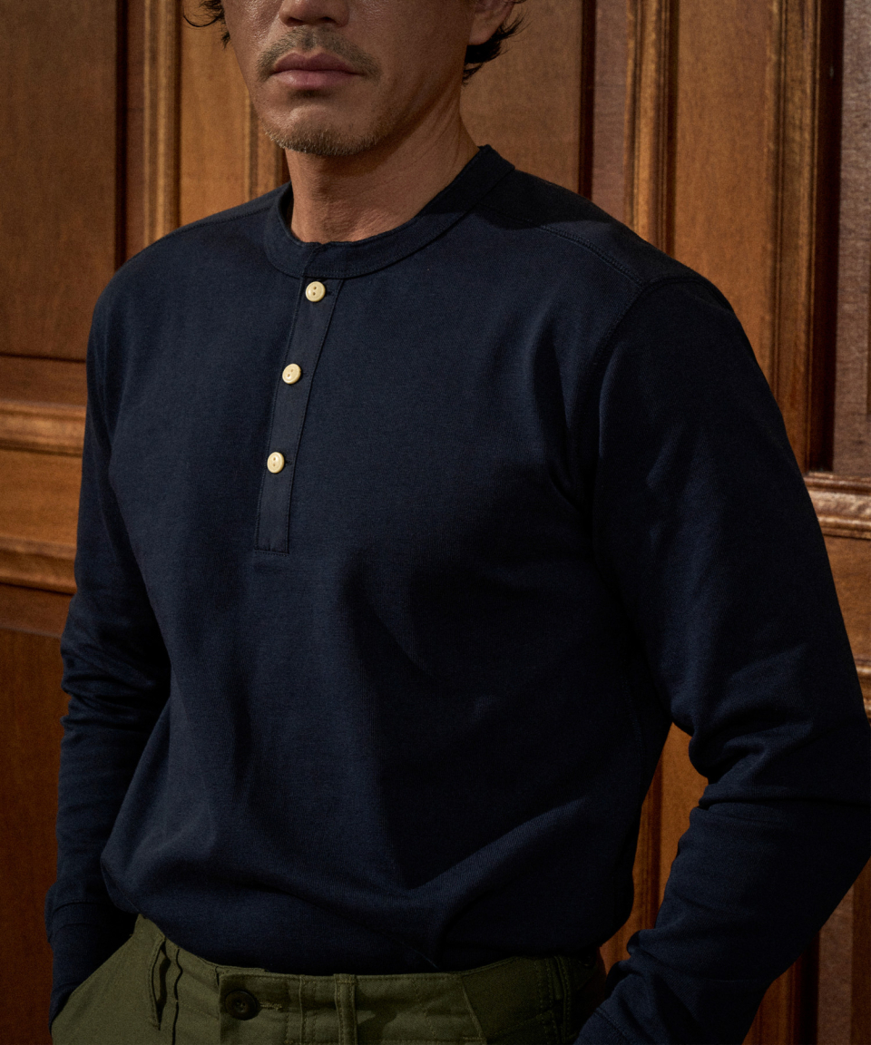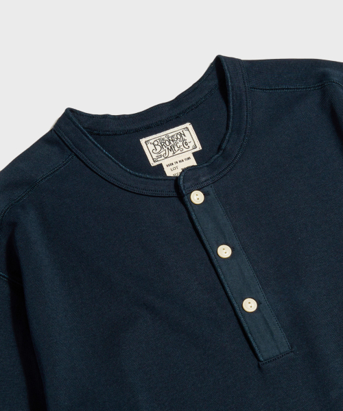 Vintage Long Sleeve Henley Shirt Navy