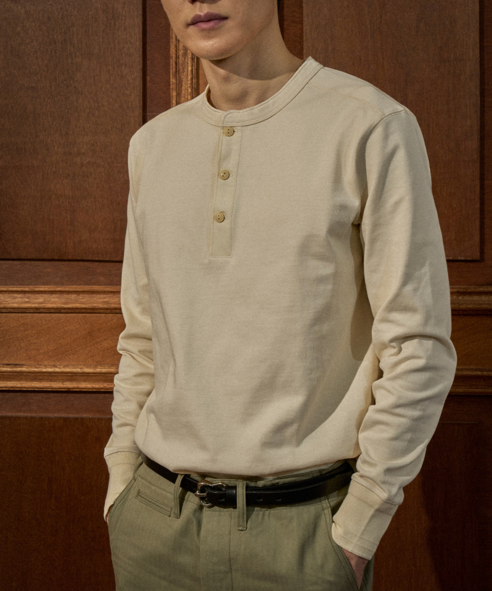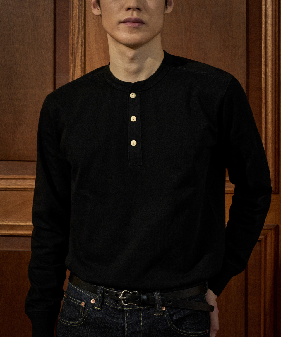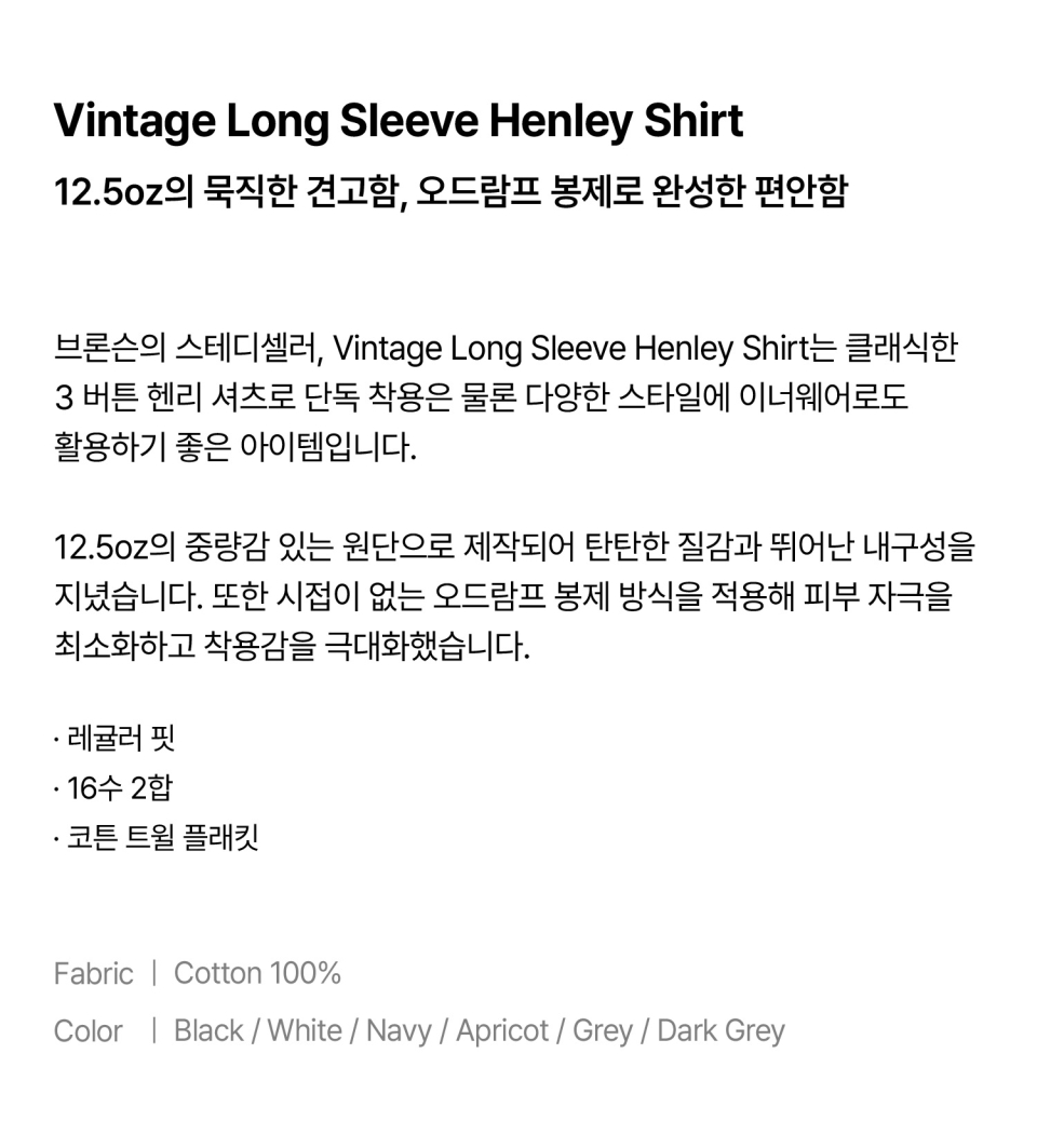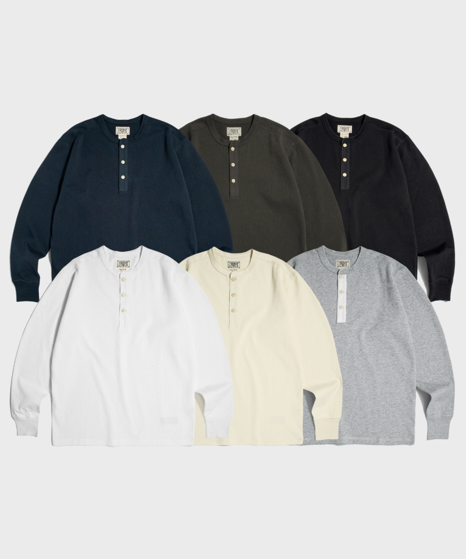 Vintage Long Sleeve Henley Shirt Dark Grey (Korea Edition)