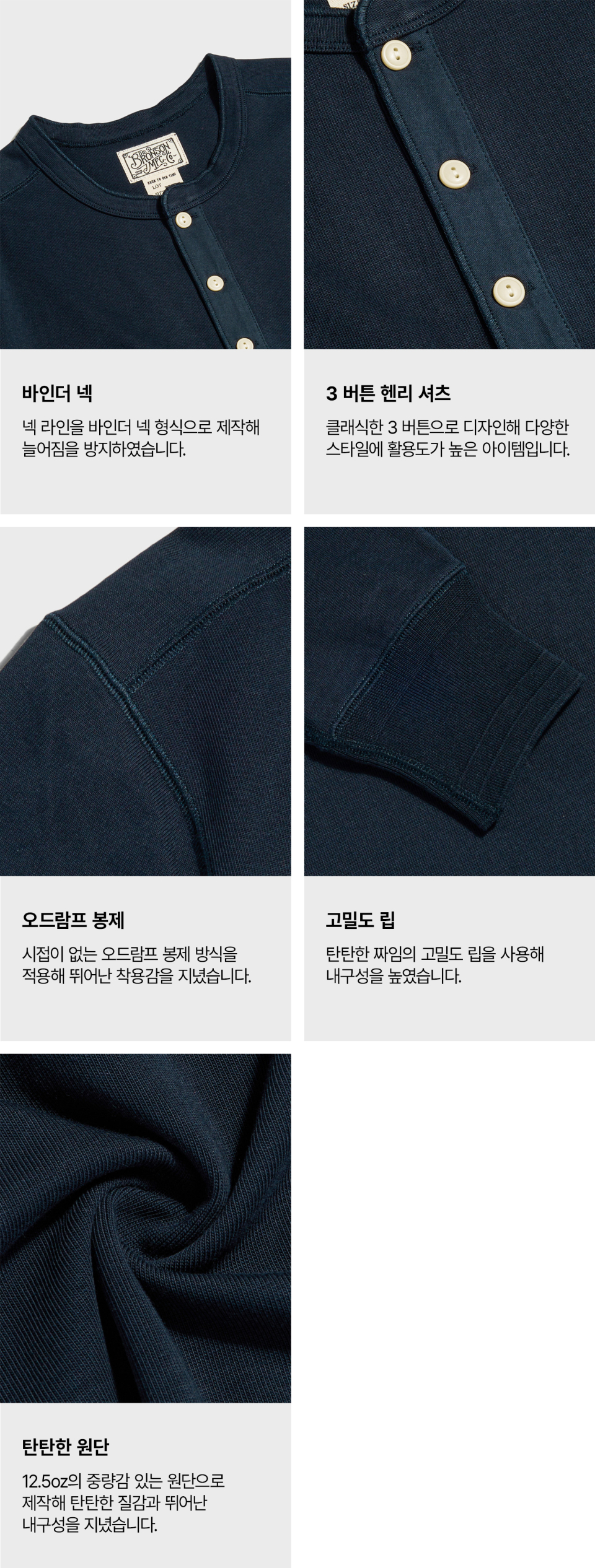 브론슨(BRONSON)은 오랜 의복을 토대로 모던한 요소를 더해 완성하는 정통 캐주얼 웨어를 추구합니다. 밀리터리, 아웃도어, 워크웨어, 빈티지 스포츠웨어 등 1970~1980년의 아메리칸 클래식에서 영감을 얻어 데님, 밀리터리, 캐주얼 등 폭 넓은 라인업을 전개하고 있습니다. 특히 기본에 충실하며 오랜 시간이 지나도 변함없이 함께할 수 있는 아이템을 생산합니다.