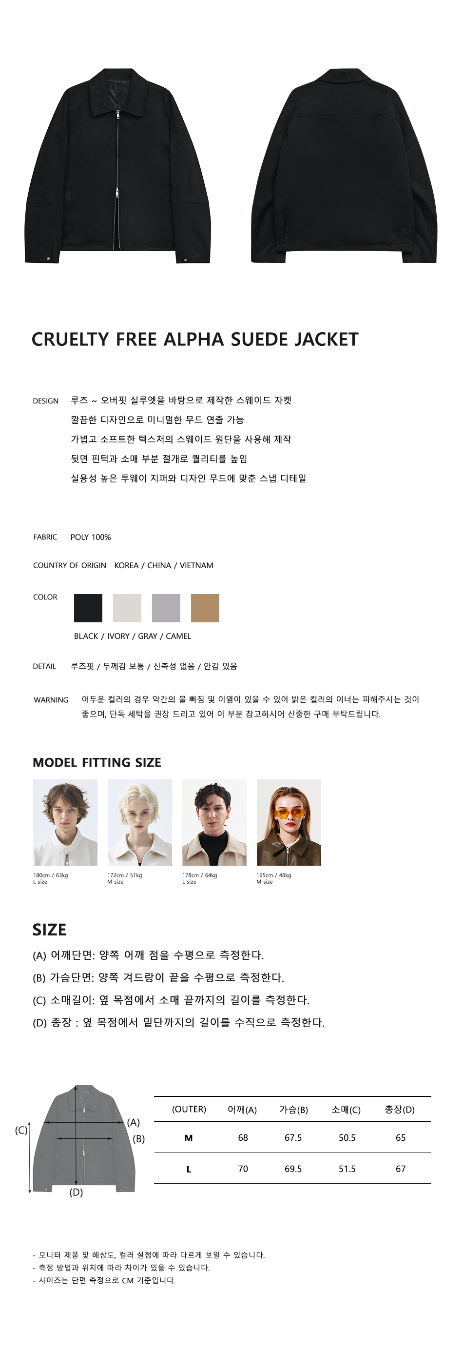 86-IRO097 [리뉴얼] 크루얼티프리 알파 스웨이드 자켓 블랙