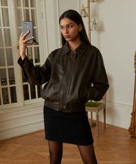 465-1 비건 레더 오버핏 자켓