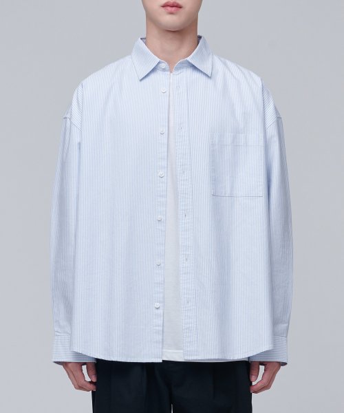 스트라이프 오버사이즈 옥스포드 셔츠 [스카이 블루 스트라이프]